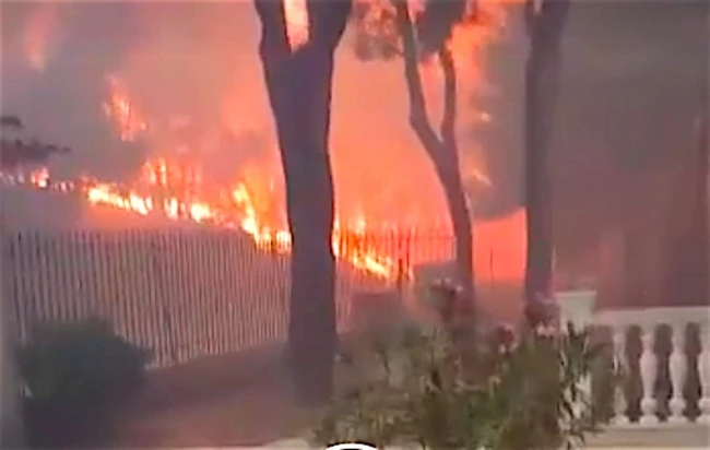 Bărbatul care filmează caută o cale de scăpare, în timp ce îşi strigă pisica, dar în câteva secunde locuinţa sa este încercuită de foc. La un moment dat, el se acoperă cu o pătură, dar scânteile care sar de la copacii în flăcări îl ard. În mod miraculos, grecul care a filmat scena apocaliptică reuşeşte să se salveze, alături de pisică: a stat lipit de un perete al casei, în timp ce incendiul şi-a croit drum pe lângă el, ocolindu-l, relatează presa locală.