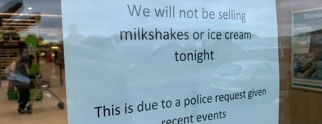 „Nu vindem milkhaske-uri şi nici îngheţată în această seară, ca urmare a unei cereri a poliţiei în legătură cu evenimentele recente“, a informat conducerea localului vineri seară, în timpul mitingului lui Farage.