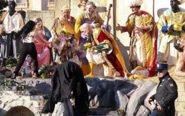 O tânără membră a grupului Femen, care s-a făcut cunoscut prin proteste topless, a încercat în ziua Crăciunului să fure statuia bebeluşului Isus din Piaţa Sfântul Petru. Activista a fost oprită la timp de forţele de ordine.