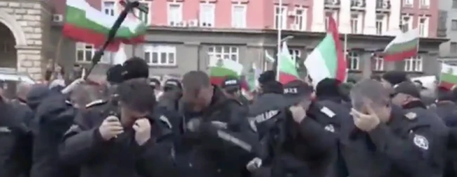 Ofiţerii formau o baricadă împotriva protestatarilor antiguvernamentali care protestau în faţa Parlamentului bulgar în acest weekend, atunci când un membru al forţelor de ordine a decis să folosească gazele lacrimogene.
