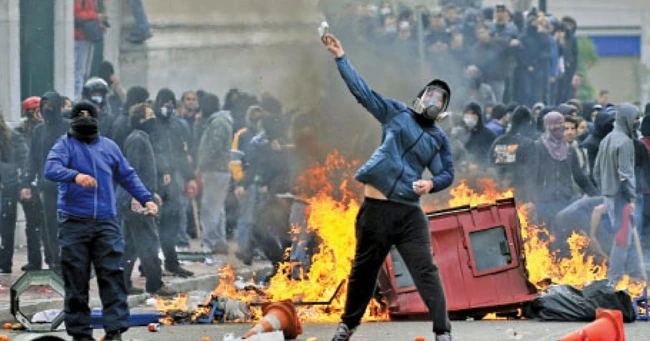 La Salonic, câteva mii de persoane au ieşit pe străzi. Peste 30 de magazine şi bănci au fost vandalizate şi mai multe vehicule au fost incendiate.