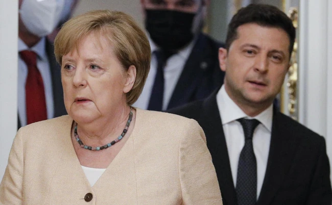 Volodimir Zelenski, la o conferinţă de presă cu Angela Merkel: Nord Stream 2 este „o periculoasă armă geopolitică a Kremlinului”