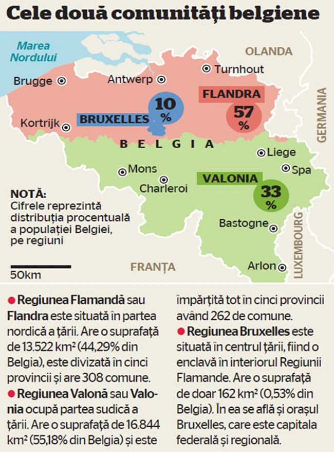 Tensiunile dintre comunitatea valonă francofonă (din sud) şi cea flamandă, vorbitoare de olandeză (regiunea din nord), s-au acutizat în ultimul deceniu, aducând de mai multe ori Belgia în pragul unei crize secesioniste, cea din 2007 fiind dezamorsată de Herman Van Rompuy, actualul preşedinte al UE. Paradoxal, regiunea Bruxelles, enclavă francofonă în Flandra, adăposteşte capitala nu numai a Belgiei, ci şi a Europei Unite, precum şi cele mai importante instituţii ale UE, inclusiv NATO, şi a devenit căminul unei „armate" poliglote de diplomaţi şi funcţionari internaţionali.