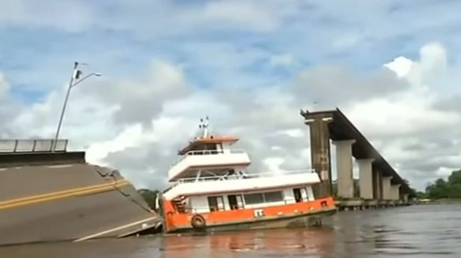 0O porţiune de 200 de metri a unui pod s-a prăbuşit după ce o navă s-a ciocnit, sâmbătă, de structura de pe râul Moju, din statul brazilian Para.