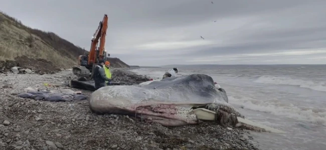 În urma autopsiei, care a fost realizată în urmă cu câteva zile, s-a stabilit că mamiferul înghițise frânghii, plase de pescuit, ambalaje de momeală și o mănușă.