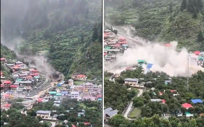 În imaginile difuzate de mass-media indiene se poate vedea cum torenţi de apă noroioasă măturau marţi locuinţe din Dharali, o destinaţie turistică din Uttarakhand.