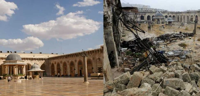 0Consecinţele catastrofale ale conflictului care a transformat în ruine Alep, care cândva era cel mai mare şi înfloritor centru comercial al Siriei, se văd cel mai bine în fotografiile care surprind oraşul înainte şi după război.