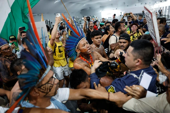 0Protestatarii înarmaţi cu bâte au pătruns cu forţa, marţi, în sediul reuniunii COP30, unde s-au ciocnit cu agenţii de securitate la intrare.