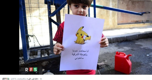 0Imagini cu mai mulţi copii din Siria care arată fotografii cu Pokémon, într-un apel ca oamenii să vină şi să îi salveze, au fost distribuite de The Revolutionary Forces of Syria Media Office pe reţelele sociale, pentru a aminti lumii de criza din această ţară, informează The Telegraph.