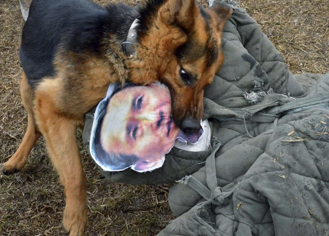 Cum se luptă câinii militari nord-coreeni cu poza ministrului sud-coreean al Apărării. Un nou video de propagandă bizar
