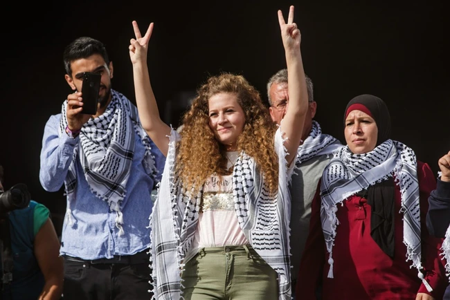 Pe zidul israelian de separare din Cisiordania, în sectorul Bethleem, a fost pictat un gigantic portret al tinerei militante. În 2017, a fost arestată pentru opt luni după ce a pălmuit doi soldaţi israelieni în curtea casei familiei sale din Nabi Saleh şi le-a cerut să plece.