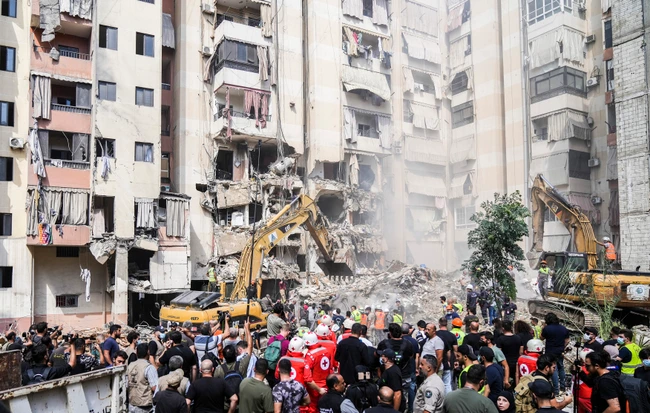 Trupele libaneze au izolat zona din jurul clădirii distruse, în timp ce membrii Crucii Roșii Libaneze așteptau în apropiere pentru a prelua cadavrele recuperate din dărâmături. Sâmbătă dimineața, biroul de presă al Hezbollah a făcut jurnaliştilor un tur al scenei, unde muncitorii încă săpau prin ruine.
