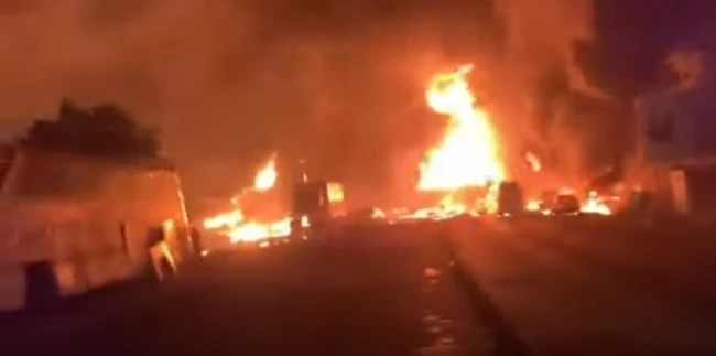Deflagraţia s-a produs după ce o cisternă de petrol de 12 de metri lungime s-a ciocnit cu un alt vehicul la o intersecţie aglomerată din oraş.