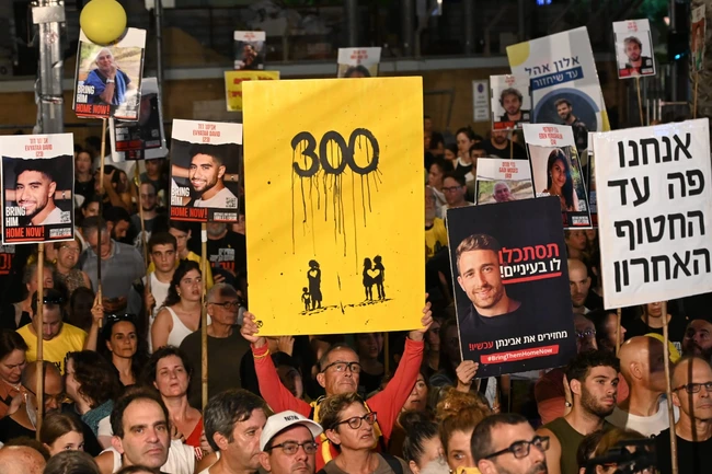 0Mii de oameni s-au adunat, joi seara, pe străzile din Tel Aviv pentru a sprijini familiile ostaticilor captivi în Fâșia Gaza, marcând 300 de zile de la răpirea acestora în atacul din 7 octombrie, conform AFP.