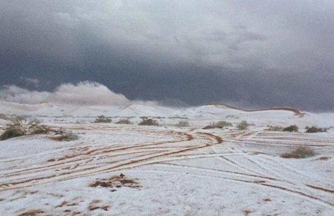 0Arabia Saudită se confruntă cu un fenomen extrem de rar. Dintr-odată, porţiuni de nisip din Deşertul Arabiei au fost acoperite de zăpadă, ceea ce a entuziasmat şi a dat bătăi de cap deopotrivă.