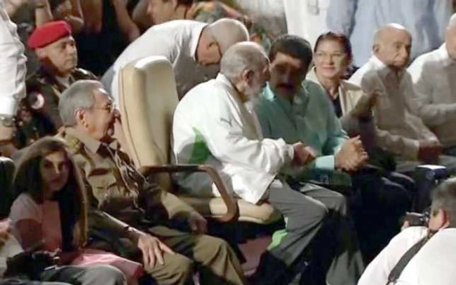 Fidel Castro, care nu a mai apărut în public din aprilie, era aşezat alături de fratele său şi de preşedintele Nicolas Maduro la o gală organizată de o companie de teatru pentru copii în sala de spectacole Karl Marx din Havana.