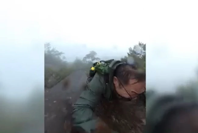 0Au apărut imagini dramatice care arată momentul în care un bărbat a alunecat și a căzut de pe un munte abrupt în timpul unei drumeții, în provincia Anhui din estul Chinei.
