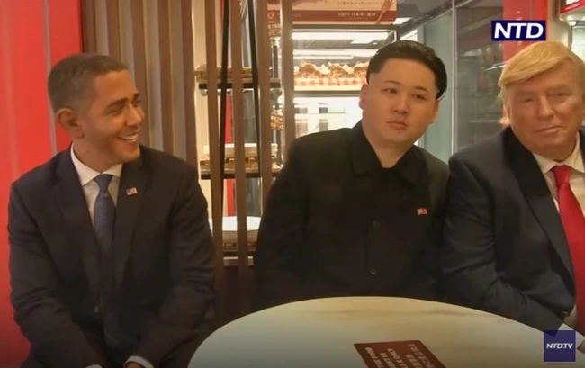 Trei bărbaţi care îi imită pe Donald Trump, Barack Obama şi Kim Jong-un au stârnit râsete în rândul pietonilor şi au provocat haos pe străzile din centrul oraşului Hong Kong în cursul zilei de vineri.