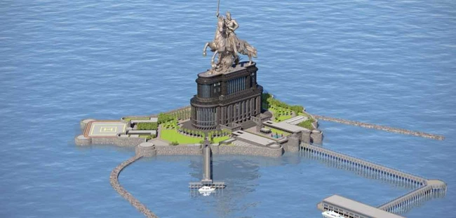 Monumentul Maharajahului Shivaji, care include o statuie ecvestră a regelui, înaltă de 120 de metri, va avea înălţimea totală de 210 metri.