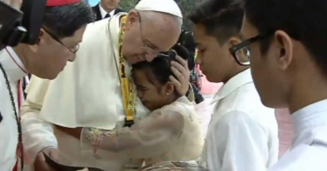Glyzelle Palomar, o fată abandonată de părinţi, în vârstă de 12 ani, l-a întrebat plângând pe Suveranul Pontif care a efectuat, în weekend, o vizită în Filipine: „Mulţi copii sunt implicaţi în traficul de droguri şi în prostituţie. De ce Dumnezeu permite aceste lucruri să se întâmple cu noi? Copiii nu sunt vinovaţi cu nimic“.