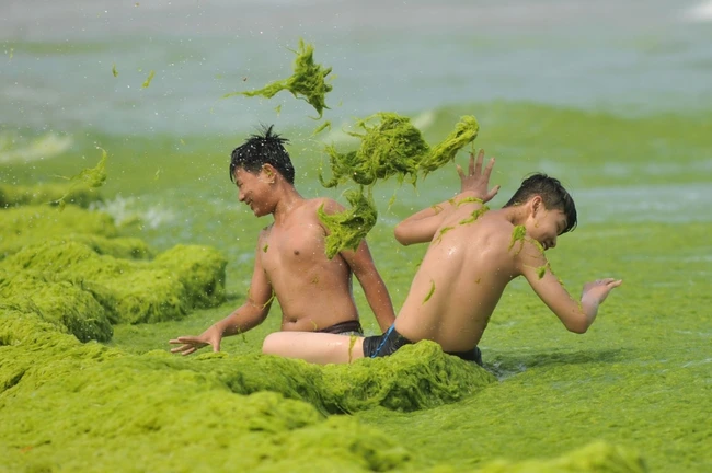 Plaja a fost invadată de alge pentru al cincisprezecelea an consecutiv, producând un disconfort celor care au venit să se bucure de vacanţă în această zonă, considerată o destinaţie renumită în China.