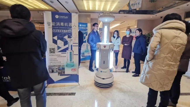 Peste 30 de roboţi pentru dezinfectare, proiectaţi şi produşi de o companie din Shanghai, sunt utilizaţi în spitalele importante din Wuhan, centrul epidemiei de coronavirus nou. Robotul alb, dotat cu un pulverizator cu peroxid de hidrogen pe ''cap'' şi nouă lămpi ultraviolete în zona ''abdomenului'', poate efectua mai multe tipuri de operaţiuni de dezinfectare în medii în care oamenii şi maşinile coexistă, după cum a declarat Pan Jing, director executiv al Shanghai TMiRob, producătorul dispozitivului. Tehnologia de navigare îi permite robotului să evite obstacolele în mod autonom, a adăugat Pan.