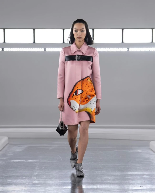 Defilarea a inclus ţinute realizate în colaborare cu artista din Beijing Sun Yitian, care pictează cu minuţiozitate animale gonflabile din plastic, printre care raţe, pisici şi iepuri. Imagini ale creaţiilor artistei au fost încorporate în ţinutele care au deschis defilarea.