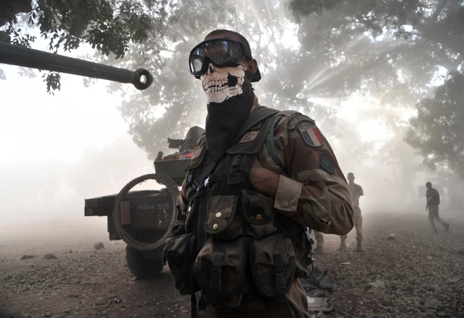 Masca purtată de un soldat francez mobilizat în oraşul Niono din Mali i-a dus pe mulţi cu gândul la personajul Ghost din jocul video „Call of Duty”, readucând în opinia publică scandalurile generate de soldaţii americani din Irak, care împuşcau din elicopter şi făceau comentarii similare celor făcute de împătimiţii jocurilor video.
