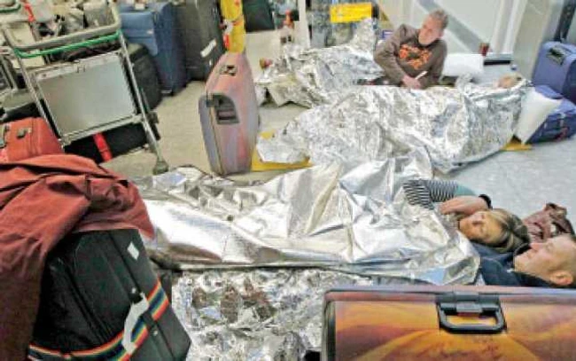 În Vestul Europei, pasagerii blocaţi au primit „pături de aluminiu“ pentru a înnopta direct pe aeroporturi Foto: Reuters