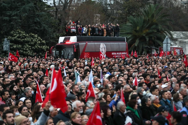 0A doua zi după condamnarea care îl privează pe primarul Ekrem Imamoglu de drepturile sale politice, mii de persoane s-au adunat la Istanbul în prezenţa liderilor opoziţiei turce, informează AFP, citat de Agerpres.
