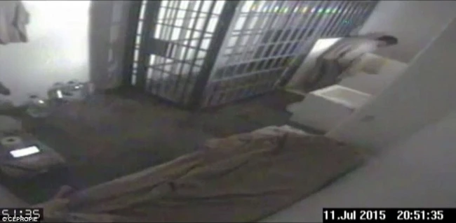 Câteva secunde mai târziu, Joaquín „El Chapo“ Guzmán se ridică de la duş şi se aşează pe patul din celulă, schimbându-şi pantofii. El intră înapoi la duş şi se apleacă, din nou, în spatele zidului. Nu mai apare.