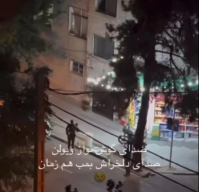 Într-un mesaj emoționant postat de BD Military pe rețeaua X (fostul Twitter), se arată: „Acesta este Teheranul sub foc. Un muzician (Amir Mazrouei) iese în stradă cu vioara sa – nu pentru a cânta, ci pentru a proteja. Cântă pentru vecinii săi, astfel încât aceștia să audă muzică în loc de explozii.”