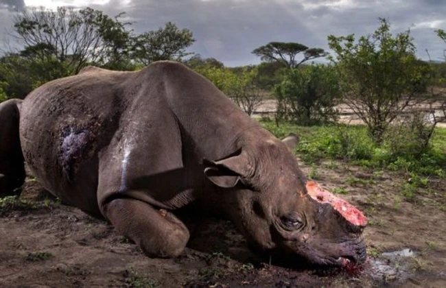 O fotografie şocantă cu un rinocer măcelărit în Africa de Sud, premiată la concursul Wildlife Photographer of the Year
