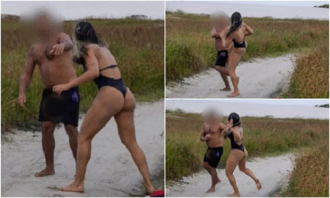 0O luptătoare MMA din Brazilia şi-a aplicat tehnicile de arte marţiale asupra unui bărbat surprins în ipostaze indecente în timp ce ea poza pe o plajă din Rio de Janeiro pentru promovarea unei linii de costume de baie.