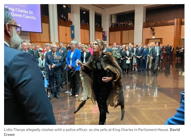 Thorpe, care purta o mantie tradițională din piele de oposum, a descris-o pe regretata regină Elisabeta a II-a drept „colonizatoare” și a fost obligată să repete jurământul când a depus jurământul în calitate de senator în 2022.