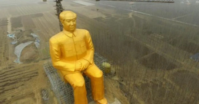 O statuie uriaşă a lui Mao, poleită cu aur, a fost ridicată într-un câmp din centrul Chinei