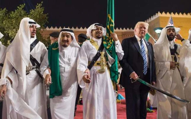 0Preşedintele Statelor Unite, Donald Trump, şi alţi oficiali de la Casa Albă au participat sâmbătă noaptea la dansul ceremonial cu săbii din Regatul Arabiei Saudite, relatează CNN.
