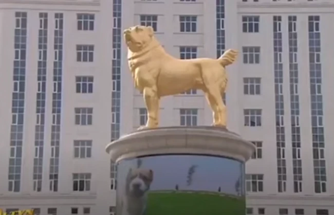 0Preşedintele Turkmenistanului şi-a răsplătit rasa preferată de câini cu cea mai mare onoare: o statuie aurită de 6 metri al cărei soclu este dotat cu ecrane informative.