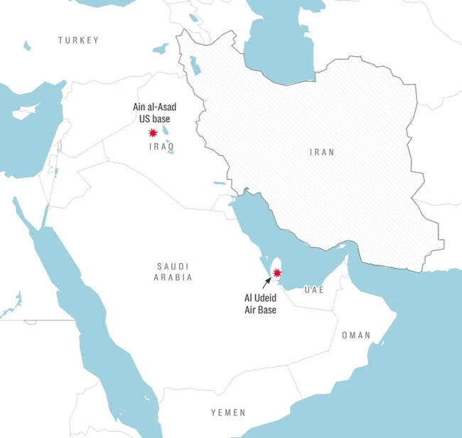 Rachetele iraniene au vizat baza aeriană al-Udeid din Qatar, în timp ce sistemele de apărare aeriană au fost activate și la baza aeriană Ain al-Asad din Irak.