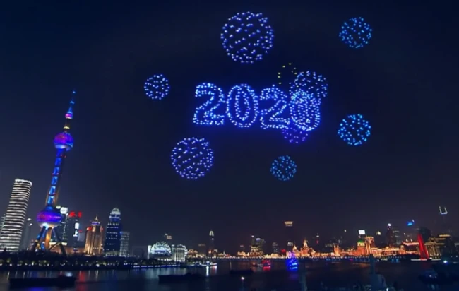 Compania care a s-a ocupat de spectacol a confirmat jurnaliştilor de la BBC că transmisinea nu a fost live şi că totul a fost o înregistrare de la repetiţiile care au avut loc pe 28 decembrie. Spectacolul fusese realizat cu ajutorul a 2.000 de drone pe funalul districtului Pudong din Shanghai. Dispozitivele au zburat în formaţie formând mai multe imagini în aer, precum o animaţie a unui om care aleargă, anul 2020 şi un text în limba mandarină.
