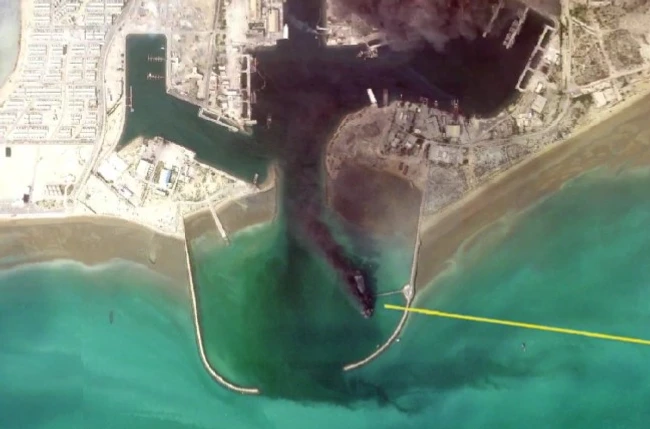 SUA țintesc capacitățile navale ale Iranului. Imagini prin satelit arată o navă în flăcări în cartierul general al Marinei iraniene