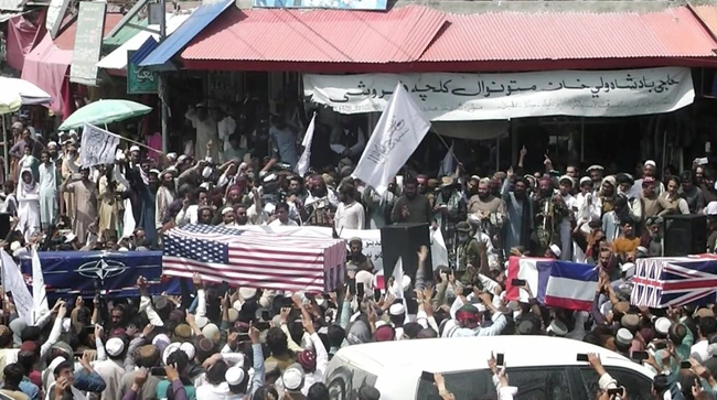 La nici o zi după ce ultima trupă americană a părăsit ţara după aproape 20 de ani, talibanii s-au bucurat de moment prin organizarea unei „înmormântări” pentru trupele armate.