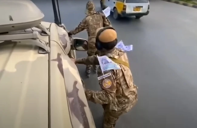 În unele momente, bărbații înarmați, care au steaguri ale talibanilor atașate pe umeri, se desprind de vehicule și se strecoară expert prin trafic pe role. Videoclipul arată oameni curioși care stau pe marginea drumului și privesc cu interes convoiul.