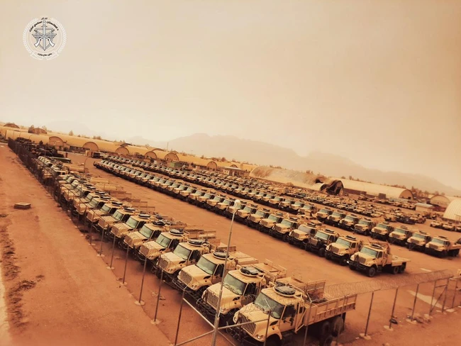 Într-o postare pe Twitter a Ministerului Apărării din Afganistan sunt ilustrate rânduri cu zeci de vehicule, dintre care unele par a fi camioane blindate asemănătoare cu Humvee-urile.