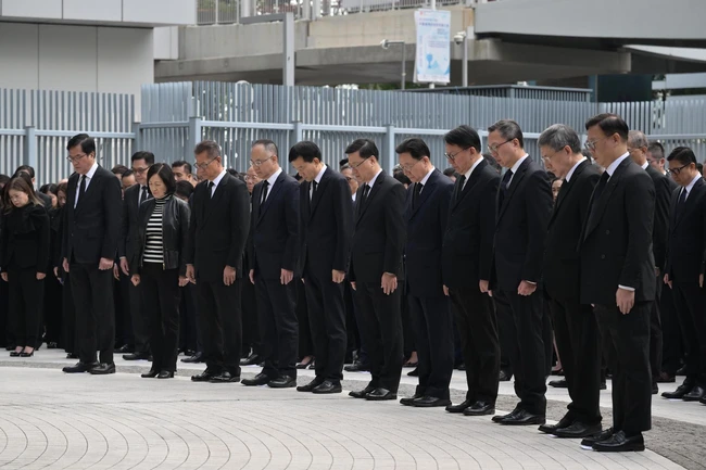 Liderul administrației, John Lee, alături de miniștri și zeci de înalți funcționari, au păstrat trei minute de tăcere în fața sediului guvernului, unde steagurile Chinei și Hong Kongului au fost coborâte în bernă, scrie The Guardian.