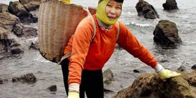 Îmbrăcate în costumele lor de scafandru, îşi umplu plămânii cu aer şi se scufundă în Oceanul Pacific pentru perioade lungi de timp, fără tuburi de oxigen: folosesc numai o mască şi labe de înot.