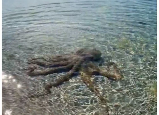 Acesta n-a scăpat însă de creatura furioasă care l-a urmărit ulterior în apă şi l-a izbit cu tentaculele sale.