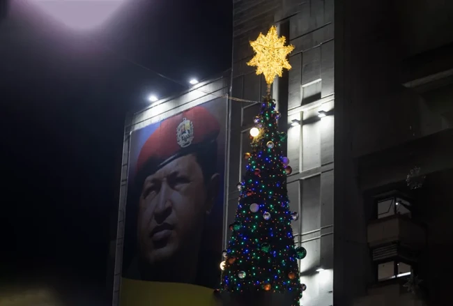 „Marea aprindere” a faimoaselor lumini de Crăciun de pe Oxford Street va avea loc abia pe 5 noiembrie. Însă pe Paseo Los Próceres din Caracas - un monument închinat eroilor independenței sud-americane din apropierea bazei militare în care locuiește liderul autoritar al Venezuelei - autoritățile au ridicat deja un brad de Crăciun roșu aprins și au înfășurat palmierii în lumini verzi.