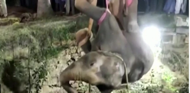 0Un elefant a fost salvat dintr-o fântână adâncă în India Foto captură via BBC