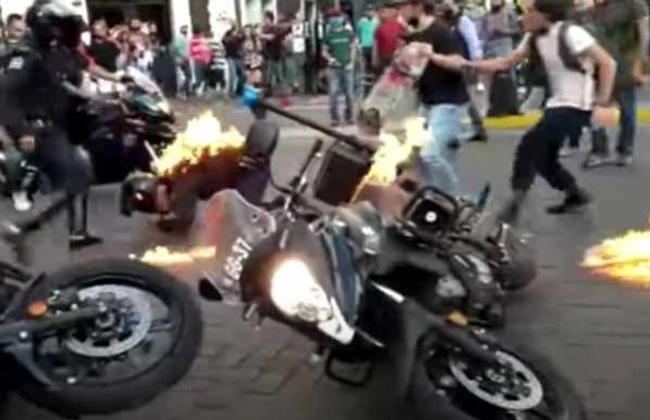 VIDEO Momente dramatice: un poliţist, incendiat în timpul unui protest